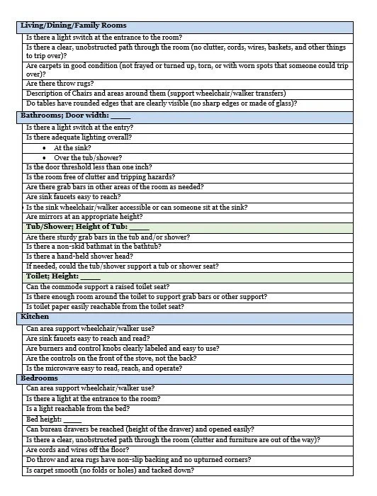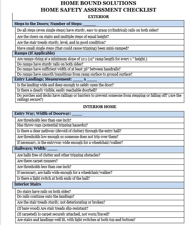 Sample Home Safety Assessment Checklist